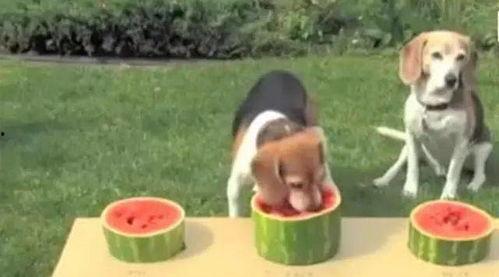 2. 技巧吃瓜:考验狗狗们吃瓜的技巧,比如用鼻子、用嘴巴等。